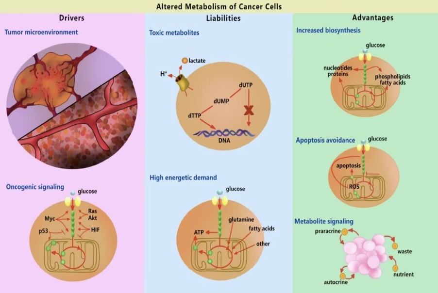 Along this path of discovery, researchers noticed something unexpected. Many cancers were not defined only by genetic mutations, but by how they produced energy. As early as 1923, biochemist Otto Warburg observed that tumor cells consumed extraordinary amounts of glucose while using surprisingly little oxygen. Despite oxygen being the more efficient fuel source, these cells preferred rapid sugar breakdown, producing excess lactate – a process now known as the Warburg effect, a hallmark of cancer biology. This shift gives tumors both growth materials and survival advantages. (Ref.)