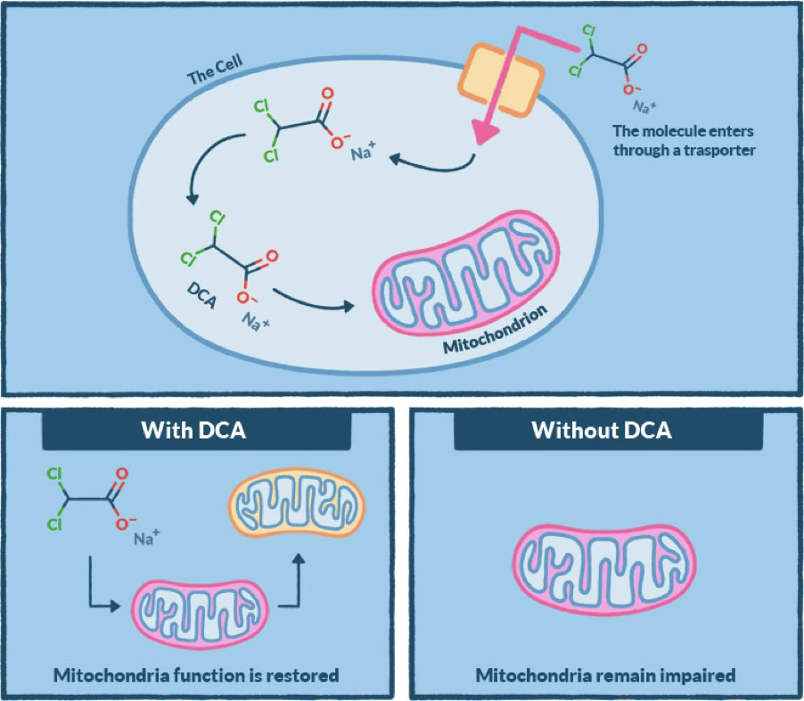 Sodium dichloroacetate acts at a key control point in how cells handle energy.