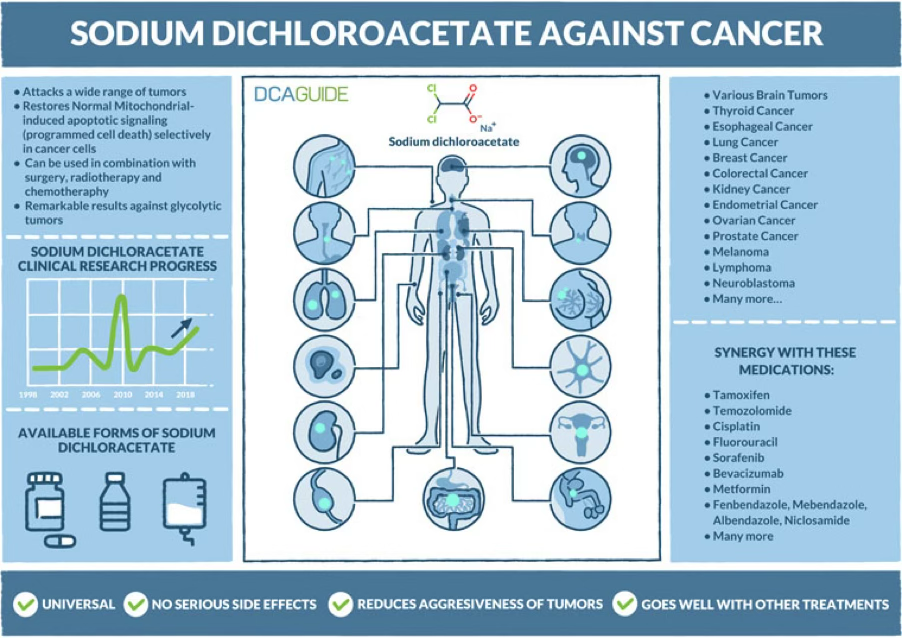 DCA is often not used in isolation. Many people explore it alongside surgery, chemotherapy, radiation, or newer targeted therapies. Because it works through metabolic regulation rather than direct cell toxicity, it is usually approached as a supportive or complementary therapy rather than a replacement.